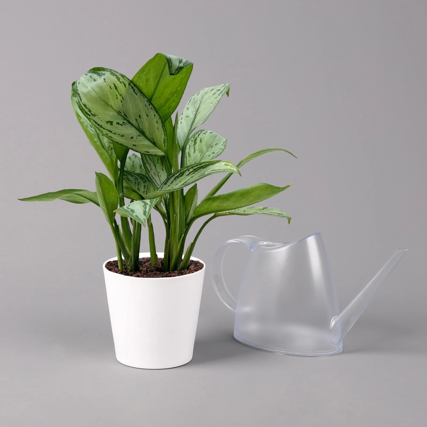 Aglaonema ‚Maria Christina‘, Mit Übertopf Dallas Weiß, Topf-Ø 12 Cm