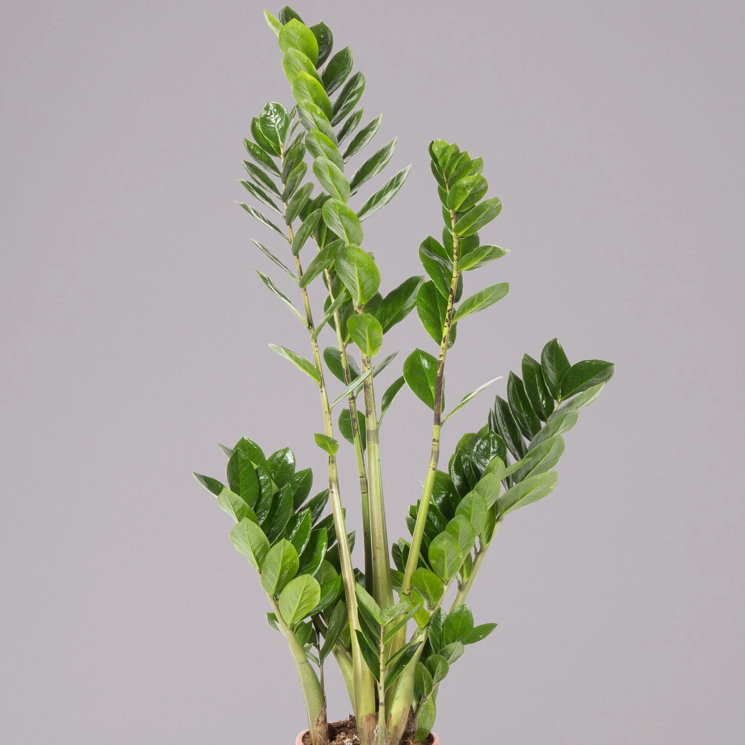 Die Glücksfeder zählt zu den anspruchlosesten Zimmerpflanzen überhaupt und kommt dementsprechend mit fast allen Standorten zurecht. Wichtig ist lediglich ein Platz ohne direkte Sonne, da dies zu Verbrennungen führt. Helle, halbschattige Standorte bis hin zu schattigen Plätzen sind kein Problem für die Pflanze. Als Sukkulente benötigt Zamioculcas darüberhinaus nur wenig Wasser, Überprüfen Sie immer die Erdoberfläche, das Substrat darf antrocknen, bevor Sie erneut gießen. Oft reicht es aus die Pflanze alle 14 Tage zu gießen, im Winter sogar noch seltener. Achten Sie darauf Staunässe zu vermeiden, da dies schnell zu Wurzelfäule führen kann. Je dunkler die Pflanze steht, desto weniger Wasser wird benötigt. Von April bis September dürfen Sie der Glücksfeder alle 4 Wochen eine Nährstoffgabe mit einem Grünpflanzendünger verabreichen.