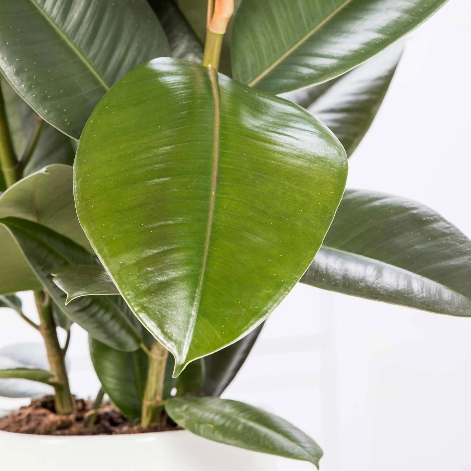Schmücken Sie Ihr Heim oder Büro mit dem Gummibaum, Ficus elastica ‚Abidjan‘. Die schöne Grünpflanze ist ein Klassiker unter den Zimmerpflanzen und wieder voll im Trend. Dank der ovalen und breiten Blätter, die besonders intensiv in tiefem Grün glänzen, sowie aufgrund der roten Farbglut sorgt der Gummibaum für eine stylische Atmosphäre und zieht magisch alle Blicke auf sich. Bei Pflanzen-Kölle gibt es den Gummibaum zu kaufen, der sich an hellen und schattigen Plätzchen ohne direkte Sonneneinstrahlung wohlfühlt und dort besonders gut gedeiht und wächst. Der unter dem botanischen Namen bekannte Ficus elastica ‚Abidjan‘ eignet sich hervorragend für die Raumgestaltung in den eigenen vier Wänden oder in Geschäftsräumen. Die außergewöhnliche Zimmerpflanze sorgt mit ihren eindrucksvollen Blättern für neue und positive Energie, zudem wirkt das satte Grün der Pflanze beruhigend auf Körper und Geist. Für die einfache Pflege sollten Sie die Wurzeln des Gummibaumes gleichmäßig feucht halten und nicht austrocknen lassen sowie alle zwei Wochen frischen Dünger hinzugeben.