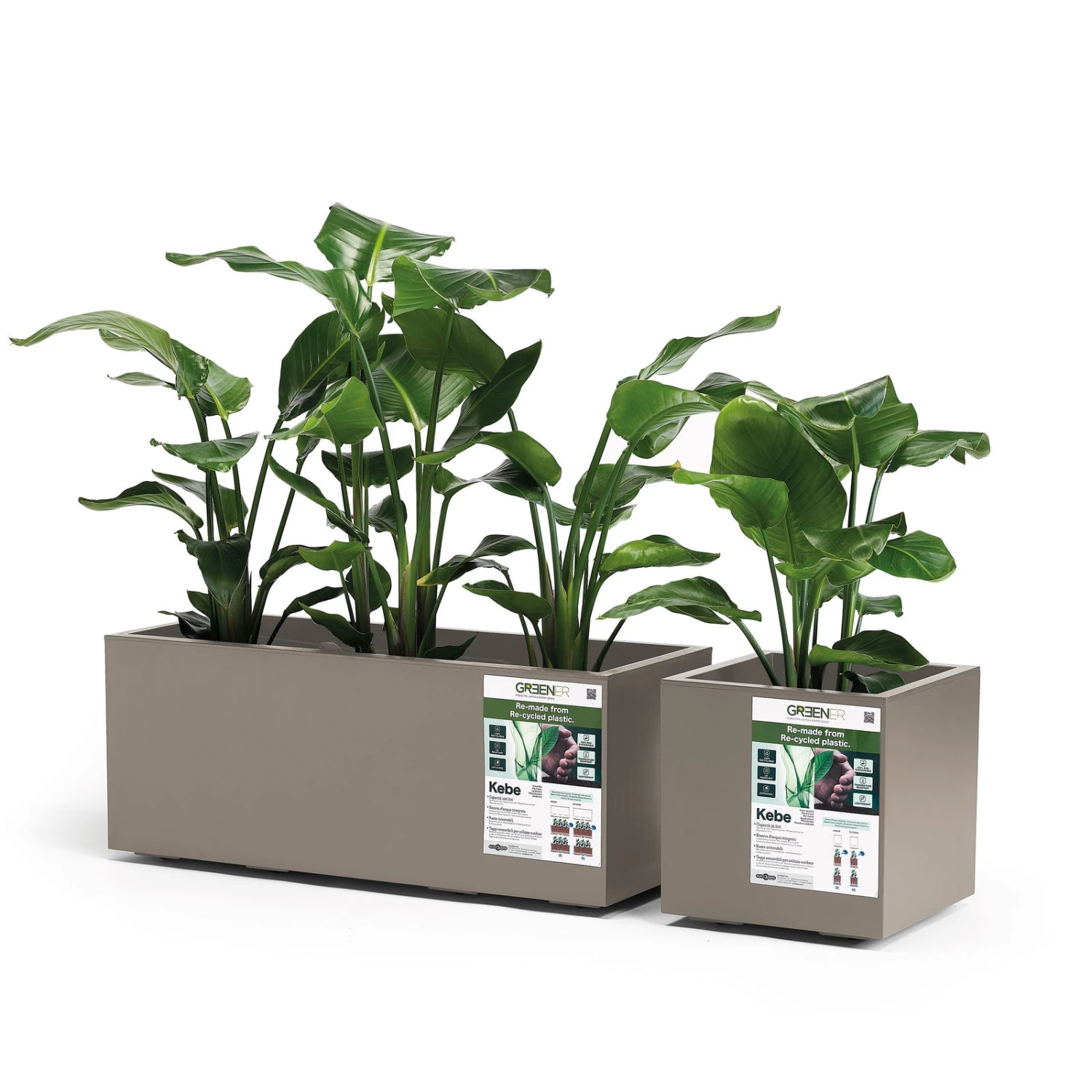 Der Pflanzkasten KEBE von Euro 3 Plast besteht aus hochwertigem, hitze- und UV-resistentem Kunststoff und präsentiert sich in der neutralen Farbe Taupe. Dieser Pflanztrog bleibt dank der feststellbaren Bodenrollen mobil. Die doppelwandige Ausführung und ein integrierter Wasserspeicher lassen ein optimales Mikroklima für alle Zier- oder Nutzpflanzen entstehen.