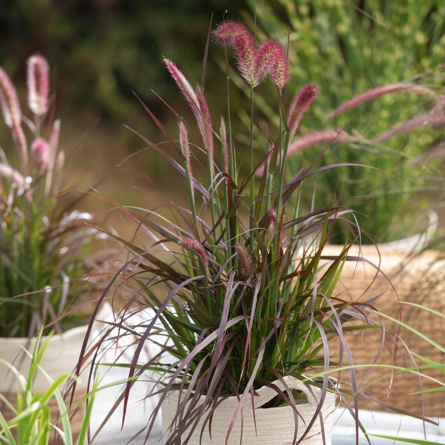 Einen mäßig feuchten bis gut durchlässigen Boden vorausgesetzt, erreicht das einjährige Ziergras eine Höhe von bis zu 1 m. An einem sonnigen Standort gedeiht das Pennisetum advena ‚Rubrum‘ am besten. Unter diesen Bedingungen fühlt sich das Lampenputzergras auch im Kübel wohl. Dabei punktet die Pflanze mit ihrer aufrecht wachsenden und buschigen Form.