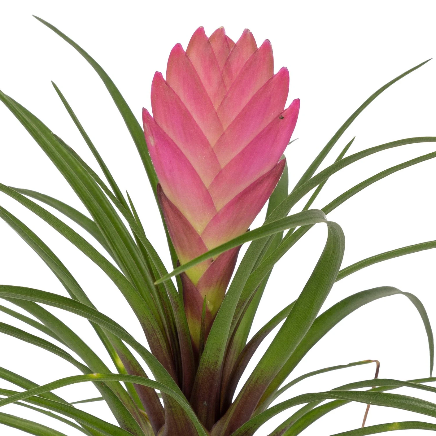 Die Blaue Tillandsie (Tillandsia cyanea) zählt zu den Bromeliengewächsen und stammt ursprünglich aus Ecuador und Peru. Am Naturstandort wächst die Pflanze epiphytisch als Aufsitzerpflanze in der Krone größerer Bäume. Charakteristisch sind ihre lanzettlichen, grünen Blätter und der auffallend pinkfarbene Blütenstand, an dem attraktive, blau-violette Blüten gebildet werden.
